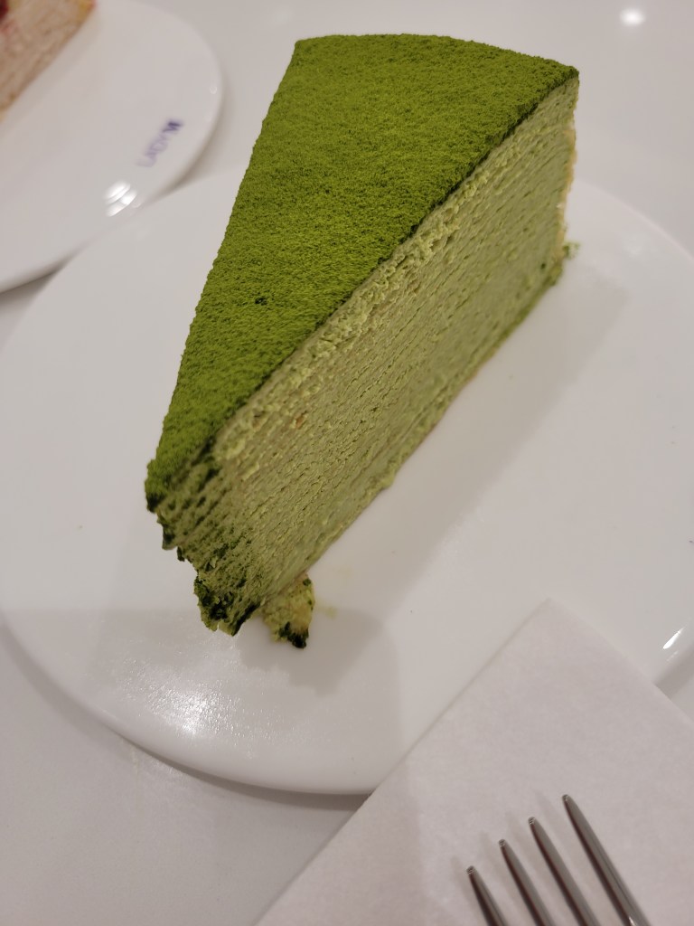 I don’t eat matcha very often so I’m not sure whether it was good quality or not. But the color was nice and the filling was not too sweet. The fork was able to cut through the cake really easily, but only from the pointed side. The strawberry one was tasty too. Fresh. There were a couple occasions that I coughed because of the amount of matcha on the top of the cake. The boutique was really clean and it was a good atmosphere. Fitting for the upscale section of the mall.