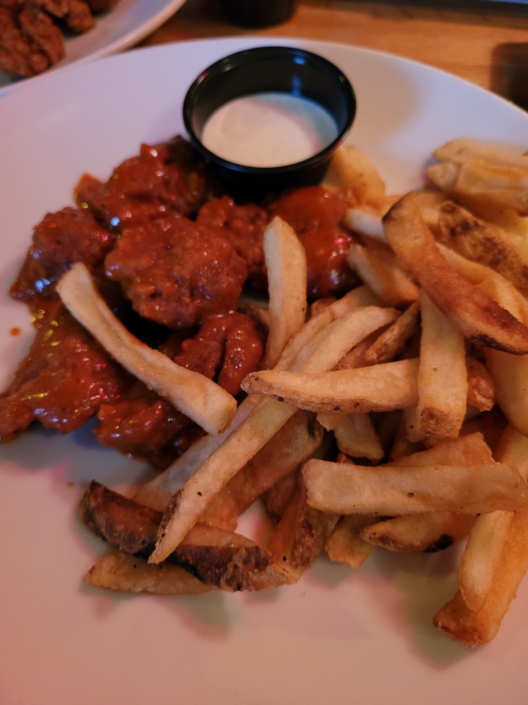 In terms of value, if it was 13.99, I think it might have been worth. 19.99 is obviously less worth. The chicken was mostly dry. The 2 different Buffalo sauces were hard to distinguish from each other – both of them were quite salty. The Garlic Parm and the Honey Pepper sauces tasted a bit weird for wing flavors. The Honey Pepper reminded me of Panda express. The Sweet Asian Chile was ok.