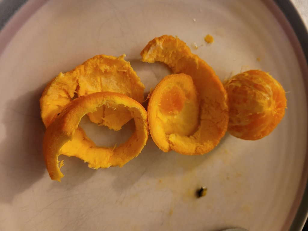 For me, using a utensil to start the initial peeling step is useful because it lets me keep my thumb slightly cleaner, and it doesn’t add very much time. For others, they don’t really care about their nails getting dirty, so peeling by hand is the preferred approach. I enjoyed the ease of cutting the clementine like an orange and may do it in the future as my preferred approach, assuming I have the utensils around.