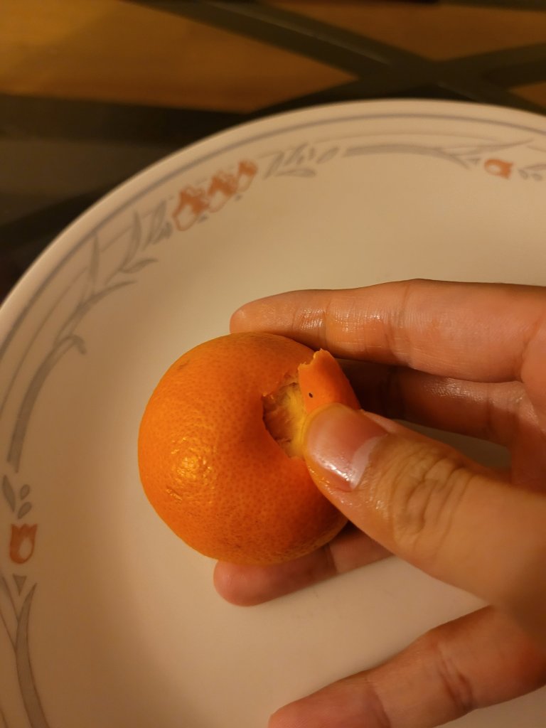 4. Peeling a clementine like normal